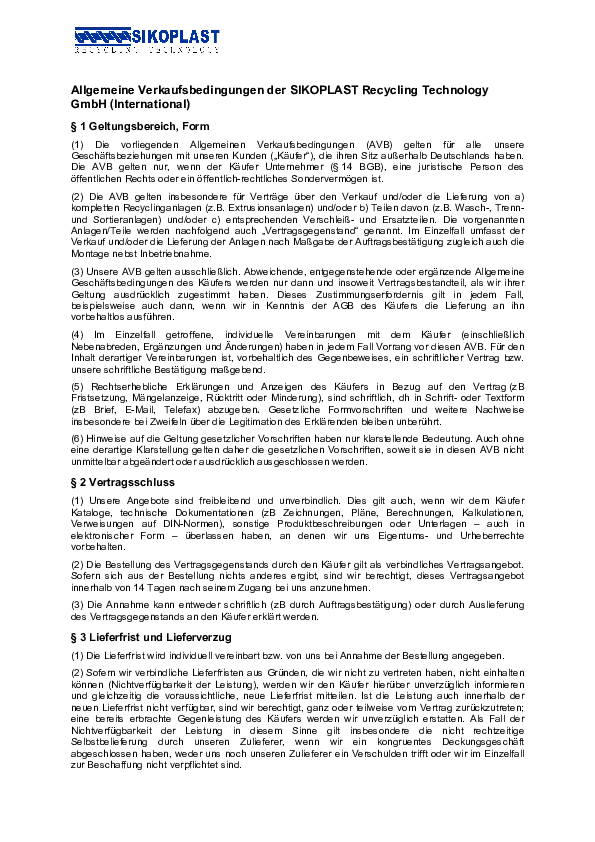 Allgemeine Verkaufsbedingungen International Deutsch
