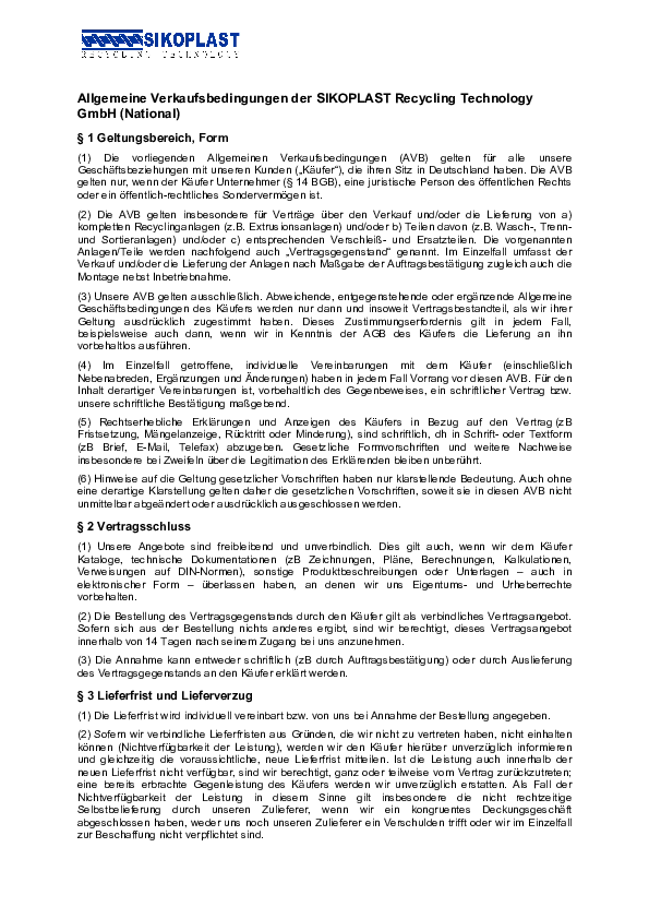 Allgemeine Verkaufsbedingungen National Deutsch